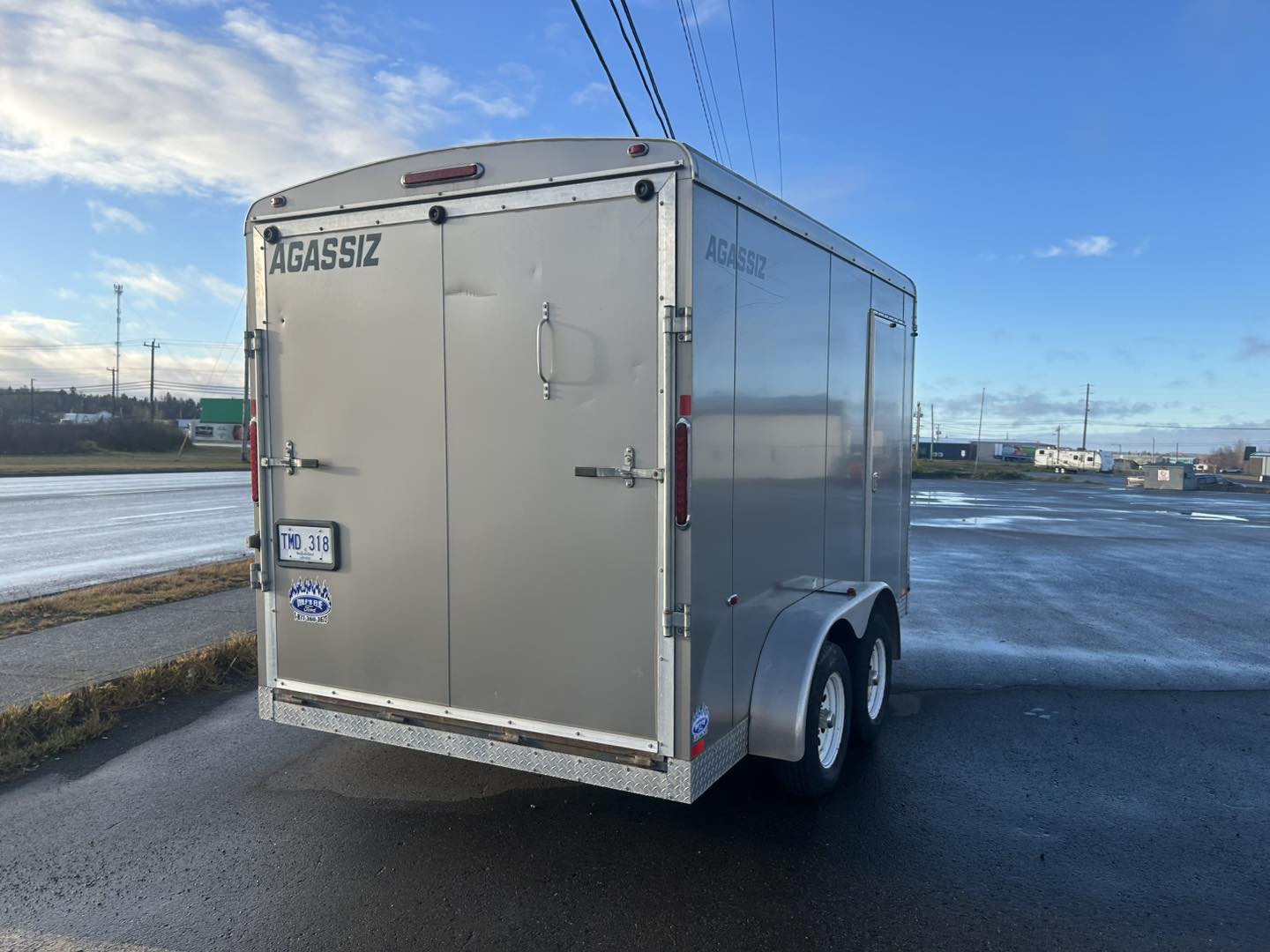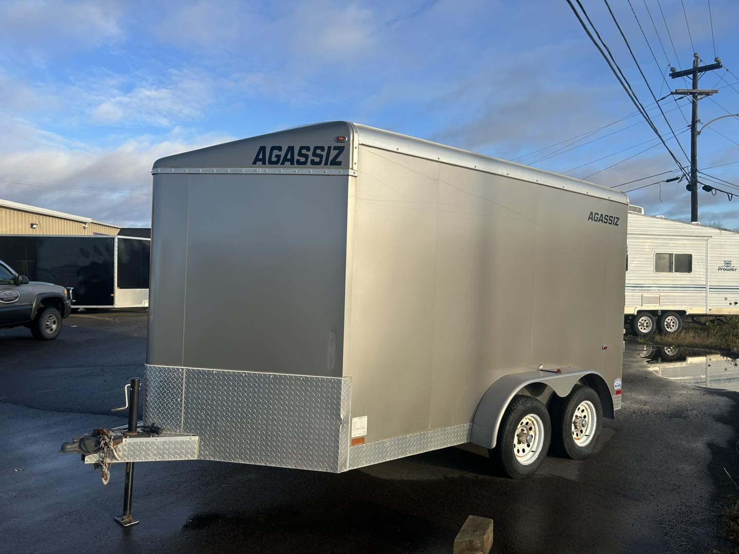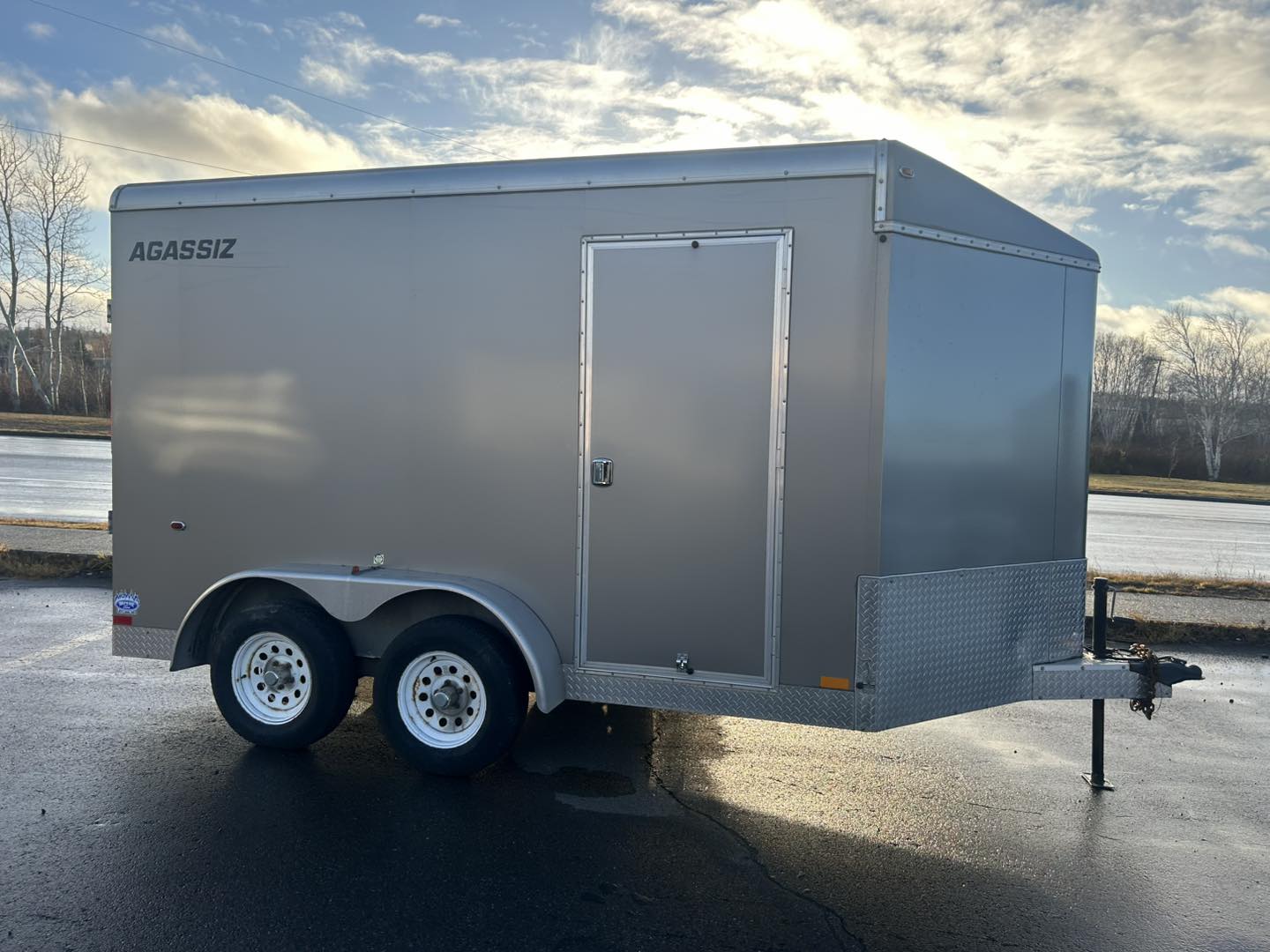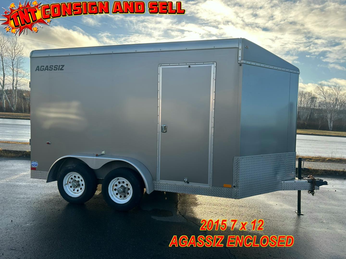 Please consider this 2015 AGASSIZ enclosed cargo trader measuring 7 feet wide by 12 feet long plus the V. It has a 7000 pound gross vehicle weight rating, heavy duty ramp door, side main door. Door opening is 75 inches Wide by 78 inches high so it can fit a side-by-side. Excellent condition, $8499. Financing available as low as $93 biweekly everything included, zero down at 4.99% over 60 months OAC. Please call the store at 489-7653 or email