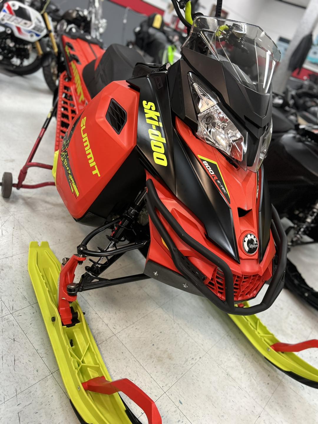 Check out this immaculate 2016 Summit 800 154 inch with just 3900 km. It is in stunning condition, not a blemish on the track not a mark or scratch. It shows like new and features Fantastic options and accessories, such as heavy duty front bumper, carbon fiber full skid plate system, heavy duty hitch although it has never been used, tank bag with map holder, glove box, GPS mount, and it is ready to go. At $7499. You can finance this beautiful skidoo as low as $88 biweekly everything included at 4.99% over 60 months OAC. You can add a five year warranty as low as $25 per payment. Shop early for best selection, please call the store for details directly at 709–489–7653. Thanks for looking