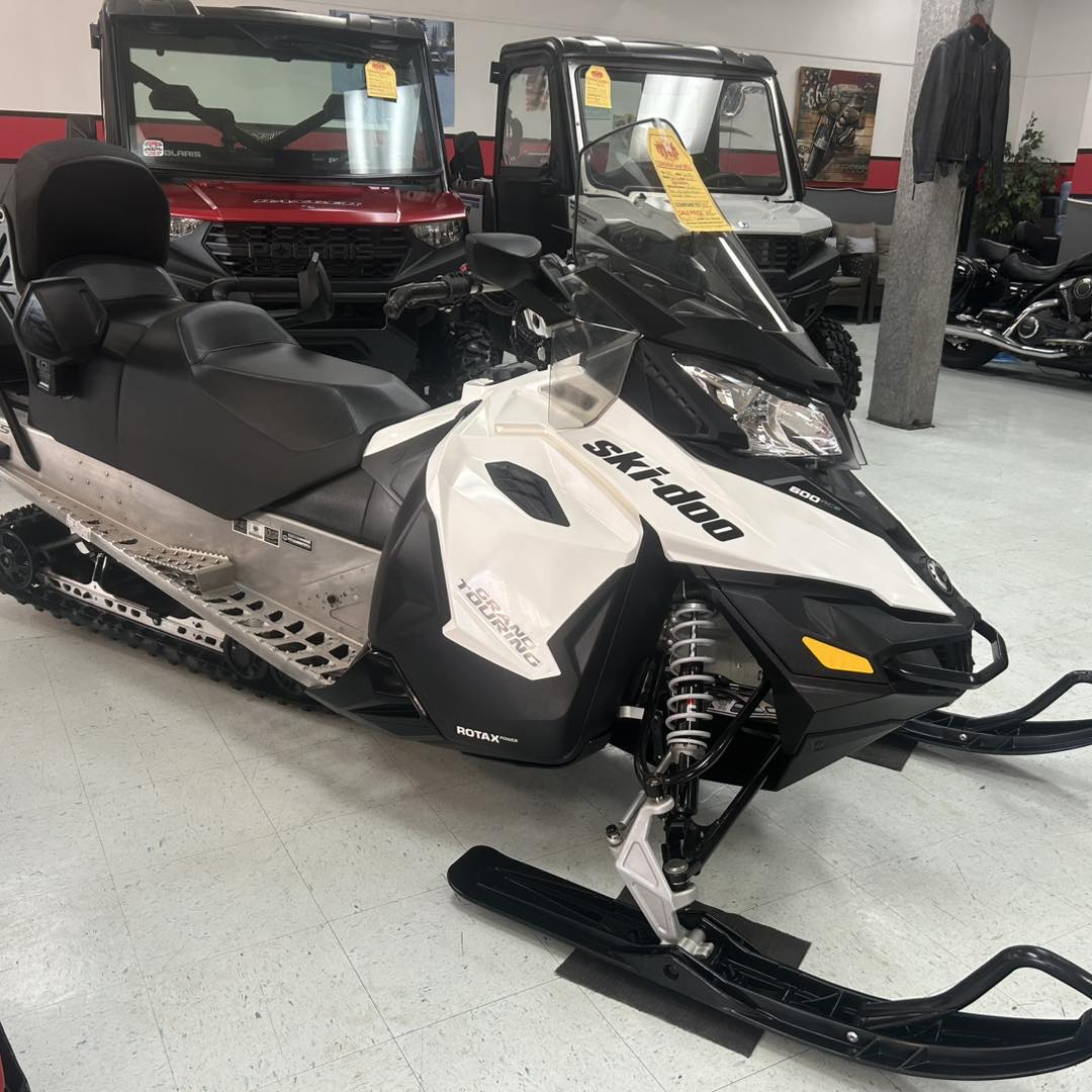 The 2019 Ski-Doo Grand Touring 600 ACE is a fuel-efficient, two-seat touring snowmobile designed for comfort and reliability, featuring a 600 ACE 4-stroke engine with Intelligent Throttle Control (iTC)and three driving modes. Key selling points include its low fuel consumption (up to 29 mpg), smooth operation, standard electric start, heated grips, rear rack, and comfortable seating for two. It is ideal for leisurely rides and cruising, though not built for top-end lake-run speed.