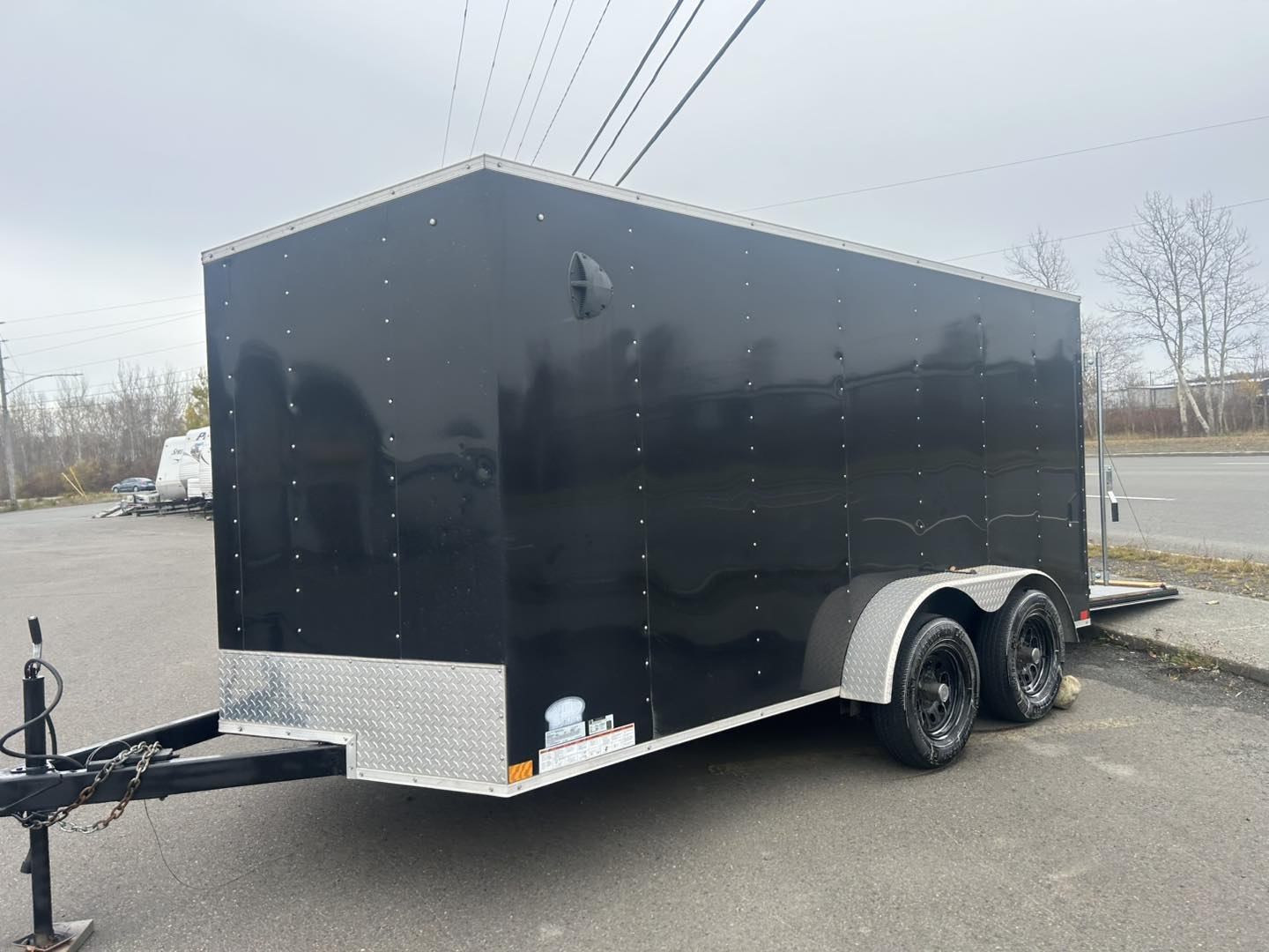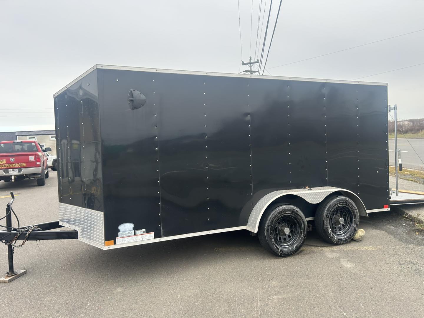 Heavy duty ramp Door, opening is 77 1/2“ W x 66 1/2“ h. 7000 pound gross vehicle weight rating. 4900 pounds Cargo capacity. Features heavy duty tiedowns and large side access door. At $8900 you can finance this unit as low $73 biweekly at 4.99% over 72 months OAC. Please call the store directly at 489-7653 for details or to arrange a viewing or financing.