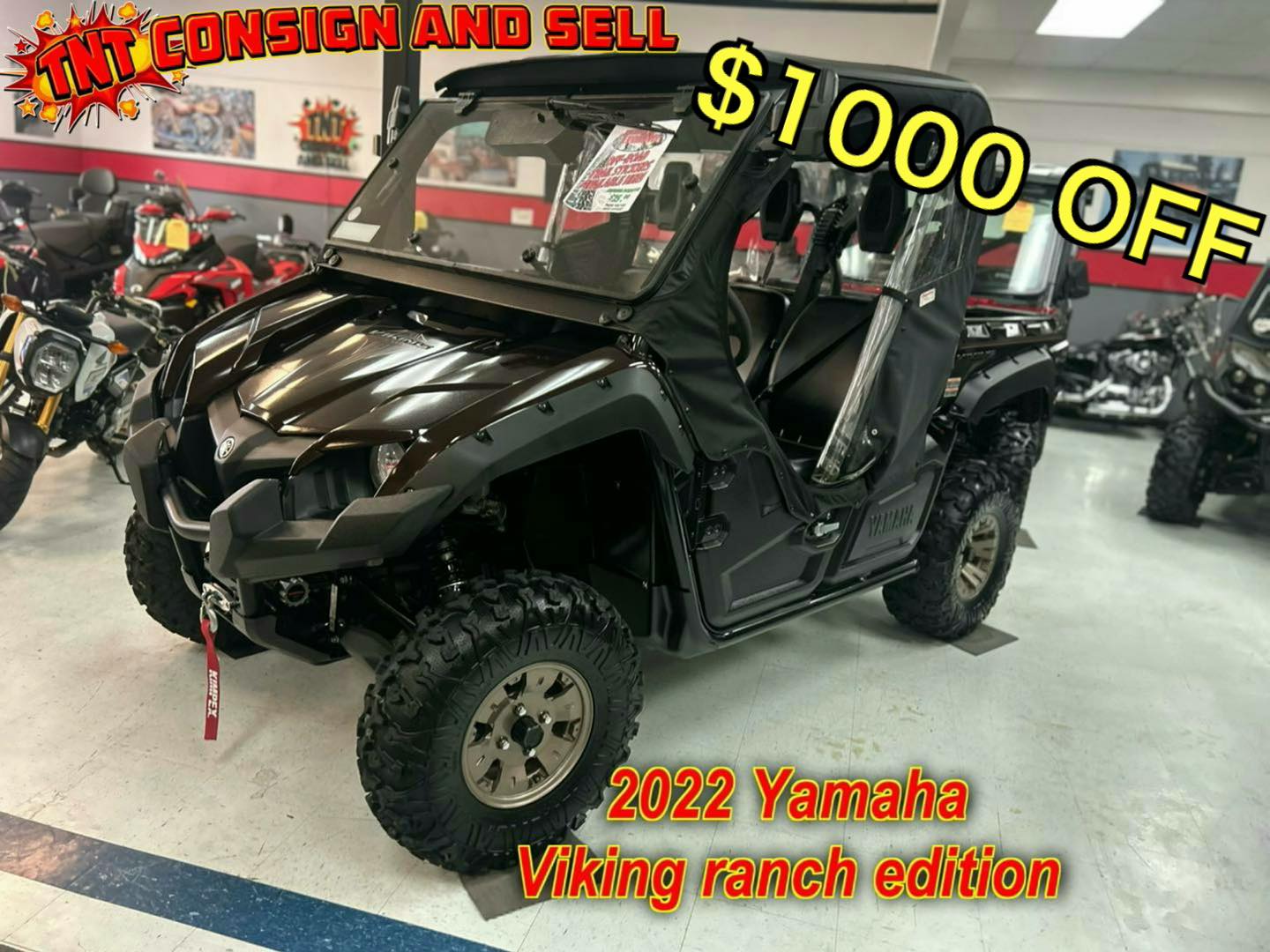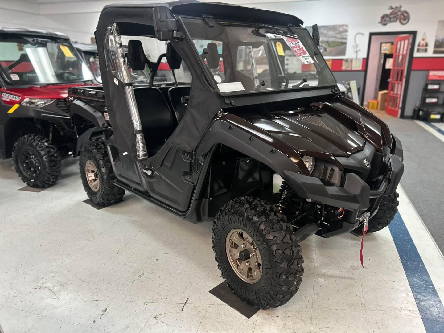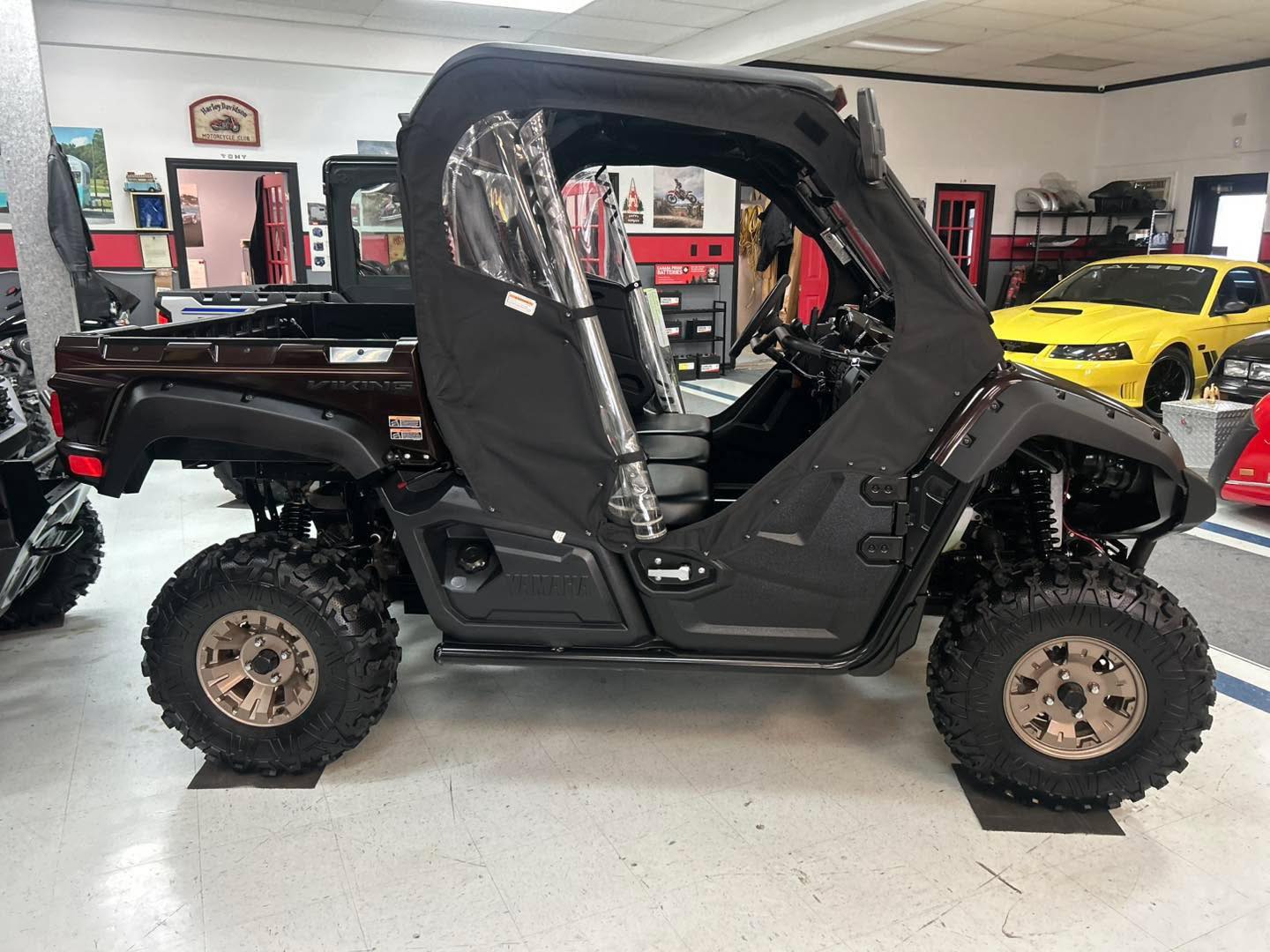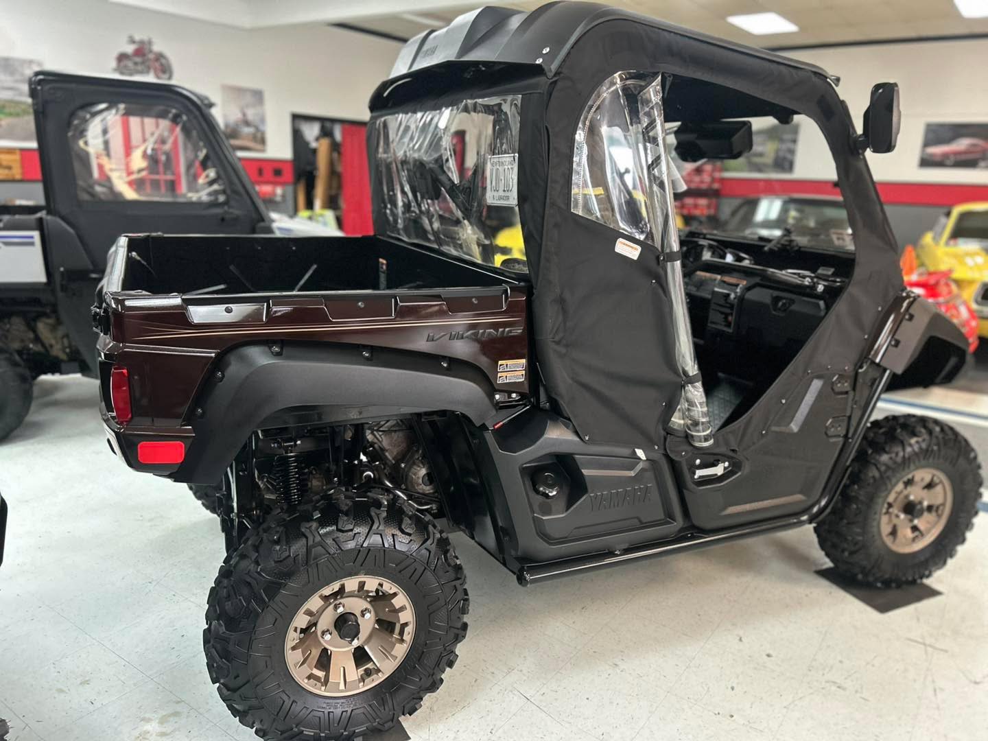 east your peepers on this absolutely stunning Yamaha Viking (RANCH EDITION). This Yamaha side-by-side has super low mileage at only 1967 km and shows like new. It has nearly every option available for this model such as glass flip out windshield with wiper, mirrors, fender, flares, upgraded aluminum wheels, full cab enclosure with heater, hard roof, heavy duty winch, and rubber bed mat. The metallic root beer, colour sparkles in the sun, and this machine looks like new. NOW $17,900 (was $18,900), you can finance this machine as low as $187 biweekly absolute everything included OAC at 4.99% over 60 months. You can add a five-year warranty as low as $21 per payment. Subprime financing available to those rebuilding credit. Please call the store 489-7653 for more details or to view this beautiful side-by-side.