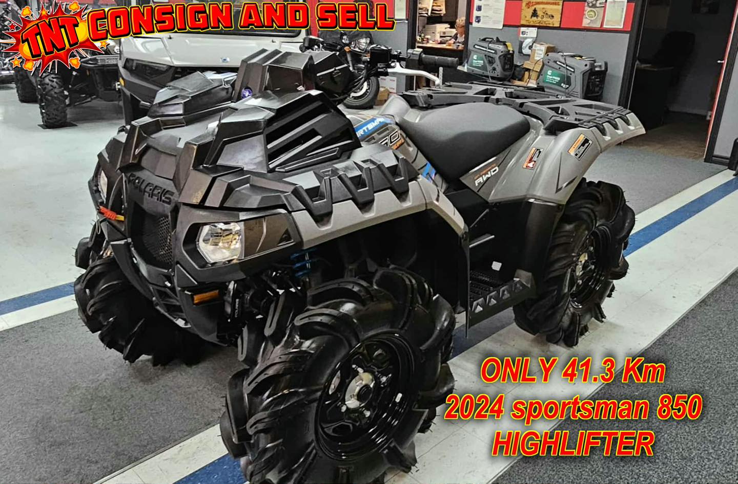 Oh wow what a beast, check out this immaculate 2024 Polaris sportsman 850 HD EFI, high lifter., With on-demand all wheel drive. This is a factory, monster cable of bogging or doing a ton of work. It has massive high lifter, outlaw two tires and only 42 km.