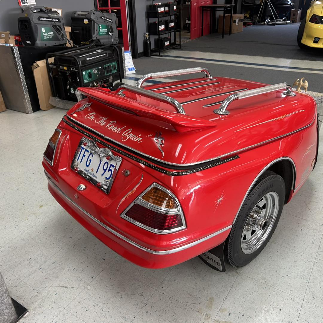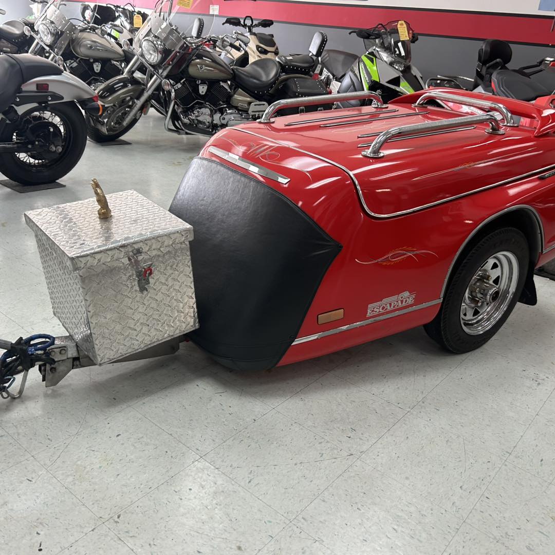 Factory Motorcycle Trailer built by escapade Trailers in California. This little unit is in fantastic condition and is ready to go. Has many upgrades such as rooftop luggage rack, front leather bra, built and cooler, and a cover. At $2199.plus HST and Motor Vehicle this could be yours. Retails for approximately $6000 Canadian. Custom colour change would be available at an extra cost, but would have to be quoted based on your colour of choice. If you’re interested, please call the store at 709–489–7653. Thanks for looking.